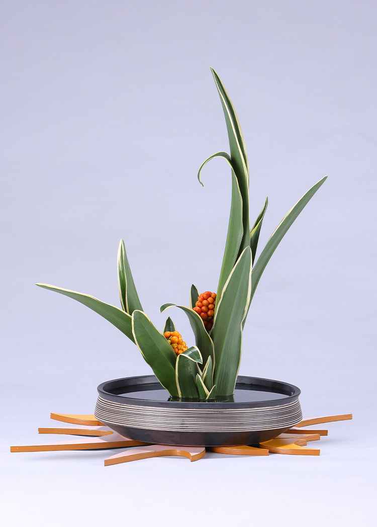 その伝承に合わせて今回は七五三の傳にオモトを生けました。